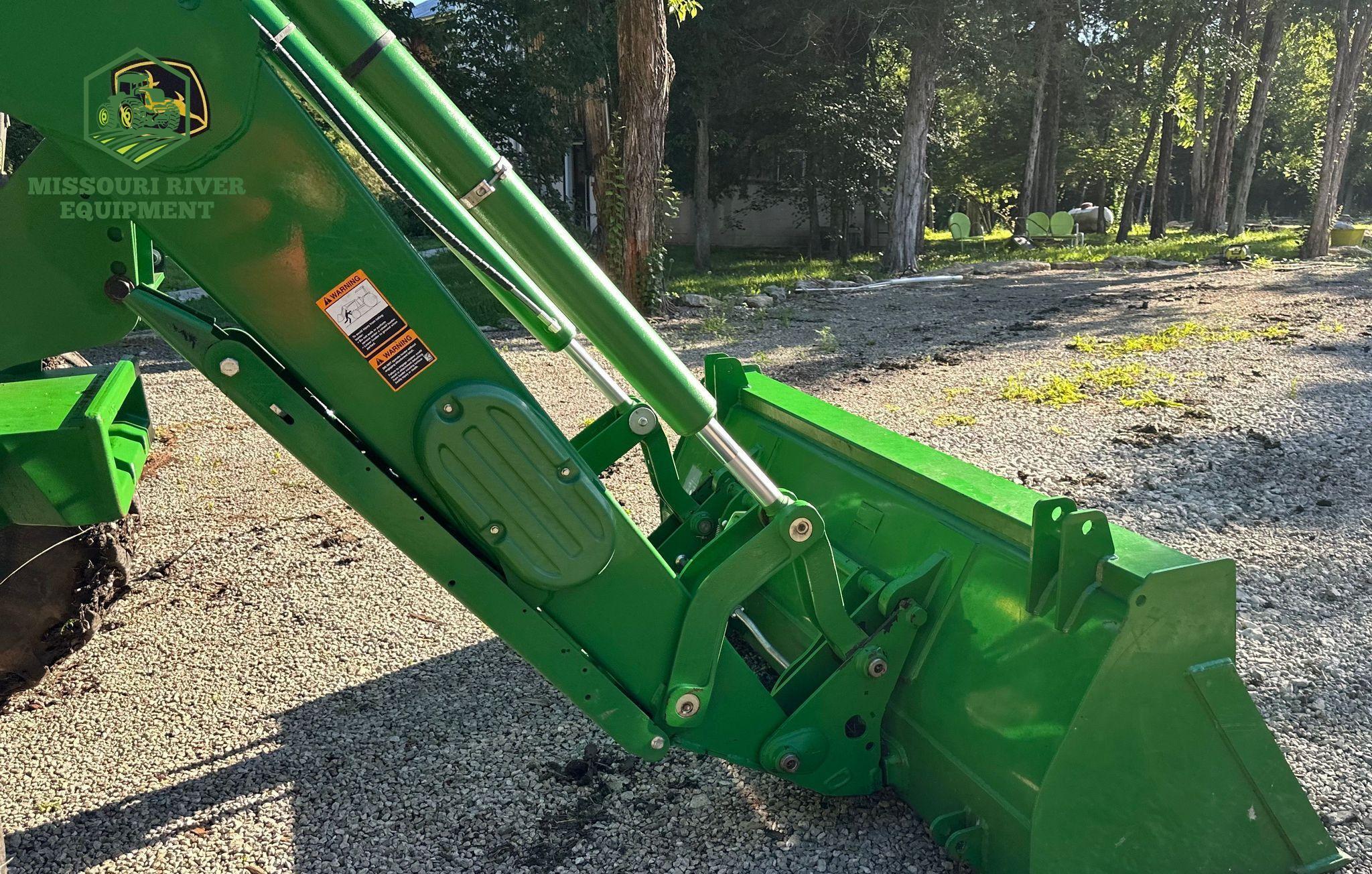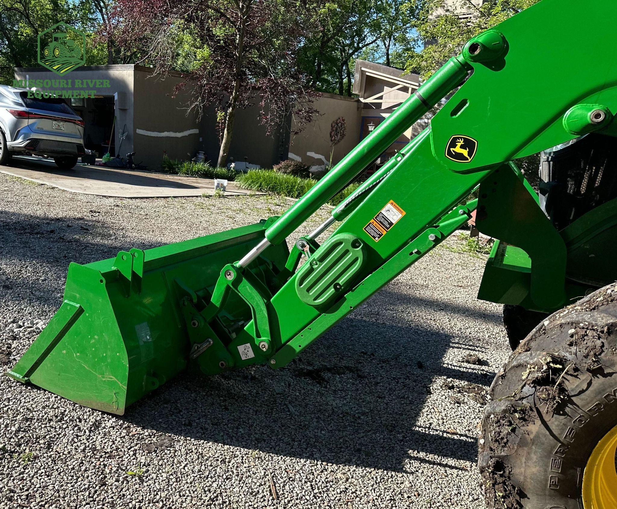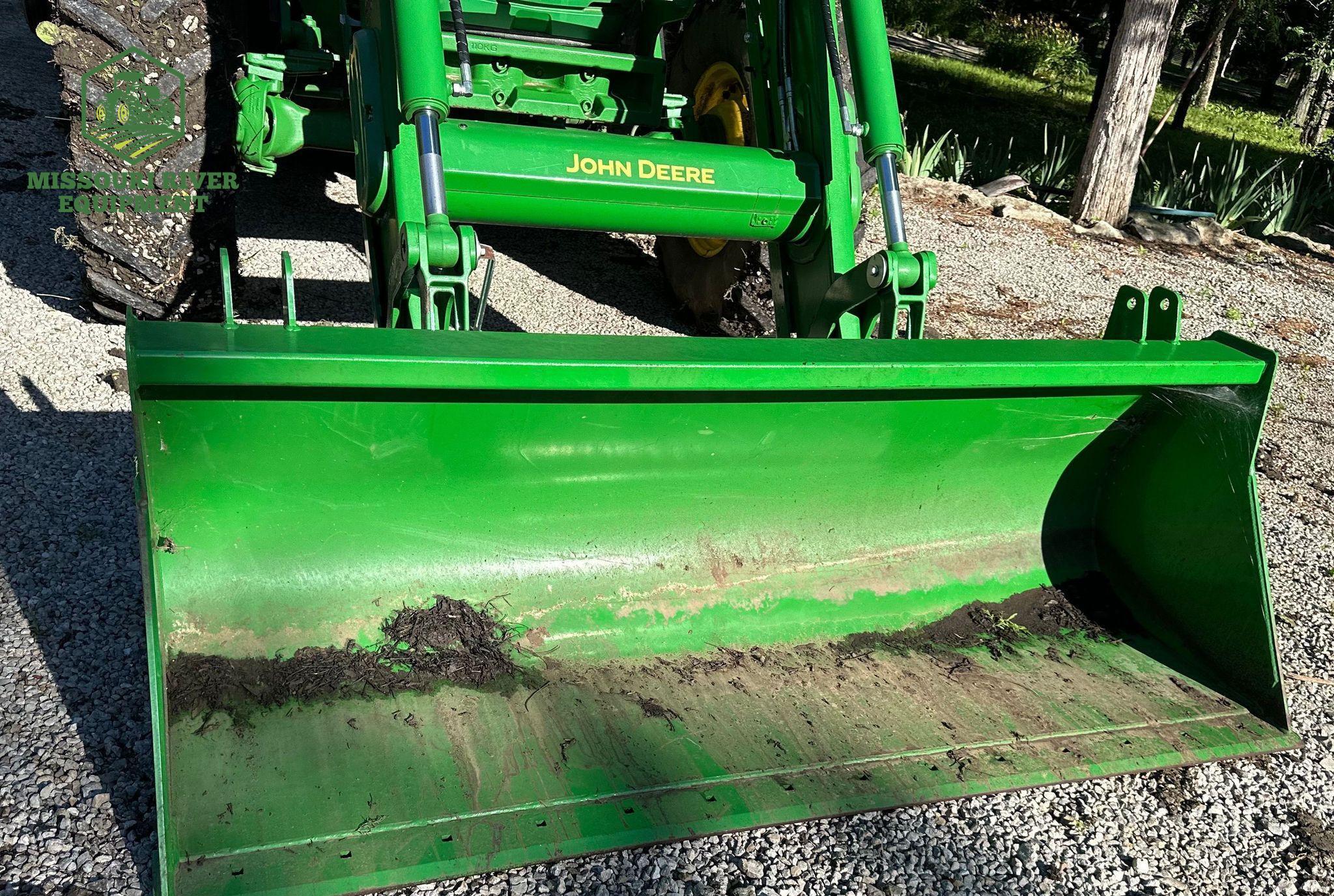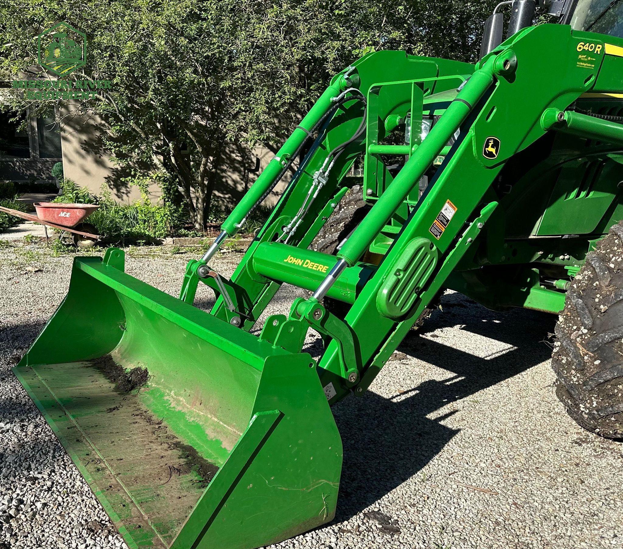 2016 John Deere 6130R MFWD tractor, 1,745 hours on meter. Powered by a John Deere 4.5L 4-Cylinder Diesel Engine rated at 130 HP, paired with a powershift transmission (24 forward / 24 reverse) and left-hand reverser. Equipped with differential lock chassis and operator station featuring AC, heat, John Deere Starfire GPS receiver, John Deere display, and John Deere Autotrac 300 auto steer. Includes 1000 PTO, three-point hitch with quick attach and top link, seven-pin outlet, and three rear hydraulic remote sets. Comes with John Deere 640R quick attach loader with joystick controls and 87" bucket. Riding on 380/85R24 front and 460/85R38 rear tires.