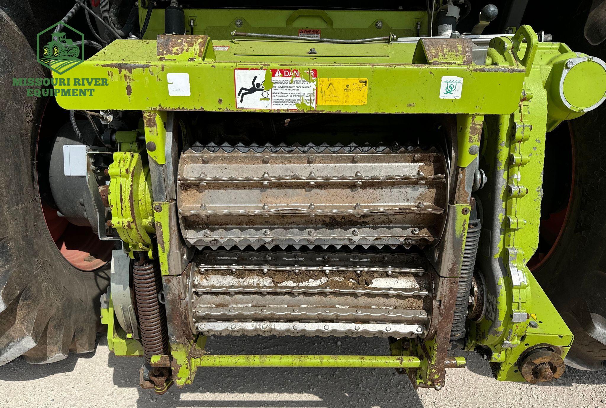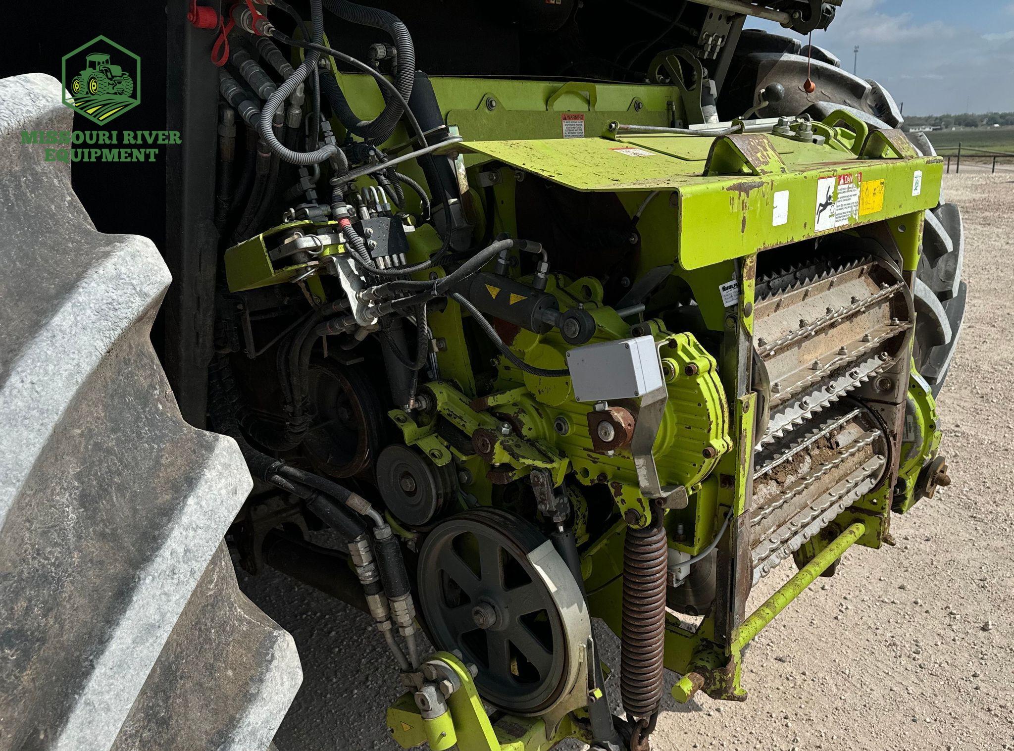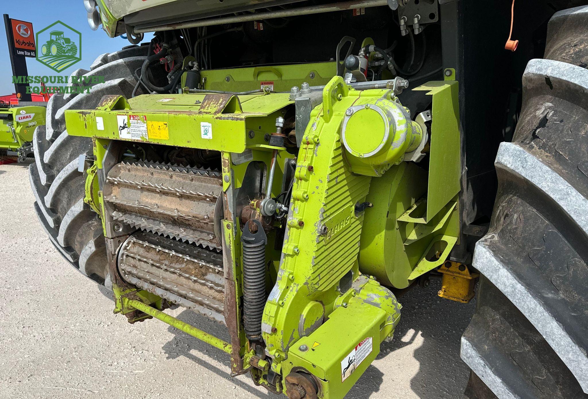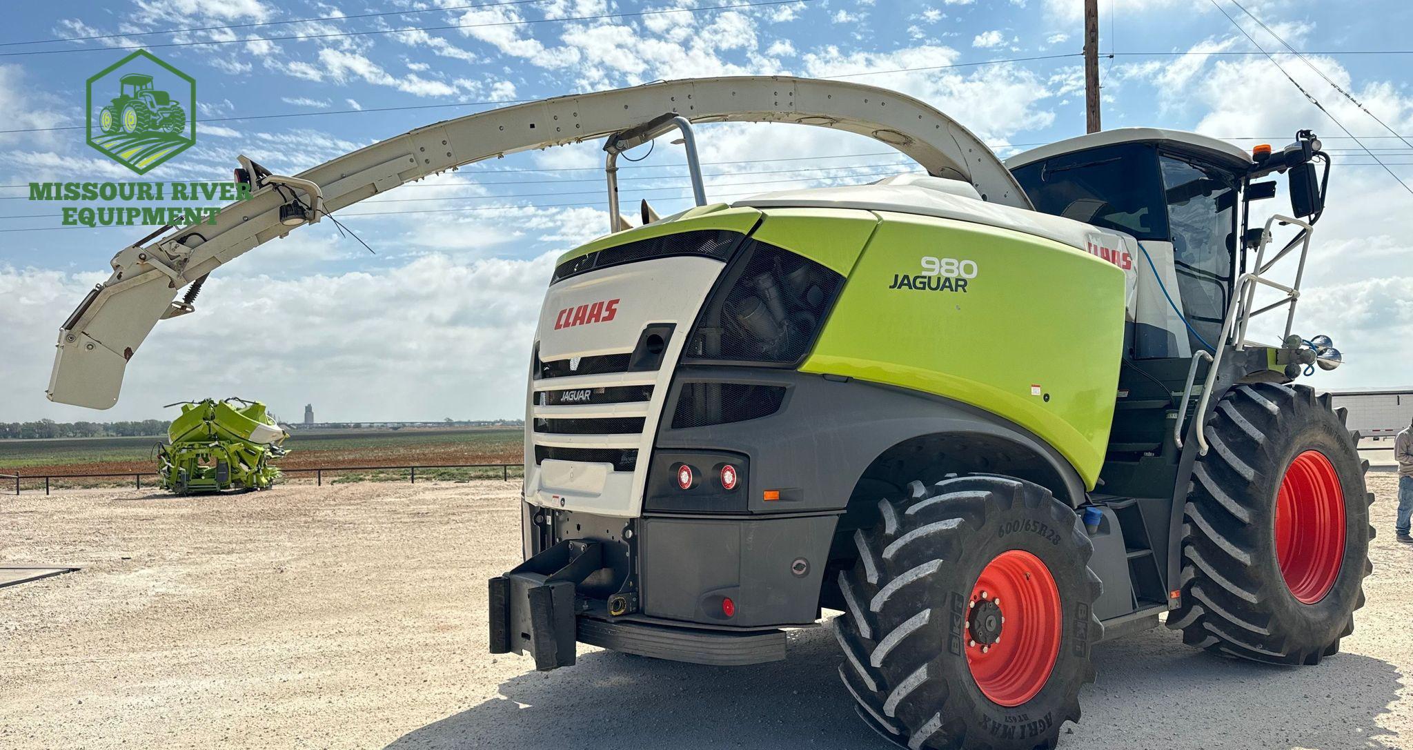 2018 Claas Jaguar 980 forage harvester with 4,107 engine hours and 3,007 cutter hours on meter. Powered by a MAN D2862LE133 24.2L 12-Cylinder Diesel Engine rated at 650 kW. Equipped with hydrostatic transmission and differential lock. Operator station includes AC, heat, and auto steer. Features auto lube system, on-board air, high-arch spout with hydraulic adjust, and single head drive. Riding on 710/70R38 front and 600/65R28 rear tires. Part of a group extension with related items DK6830 and DK6831.
