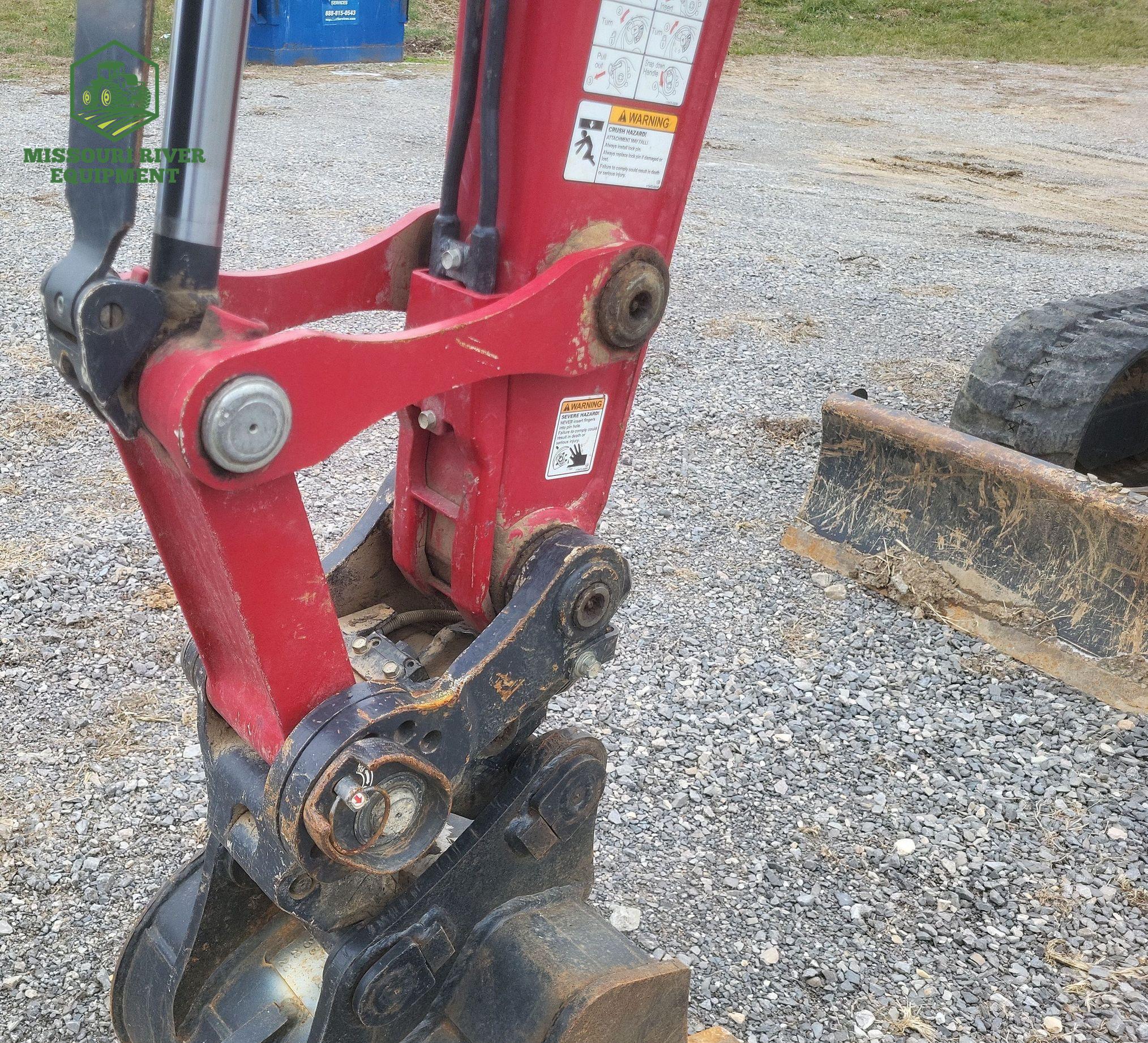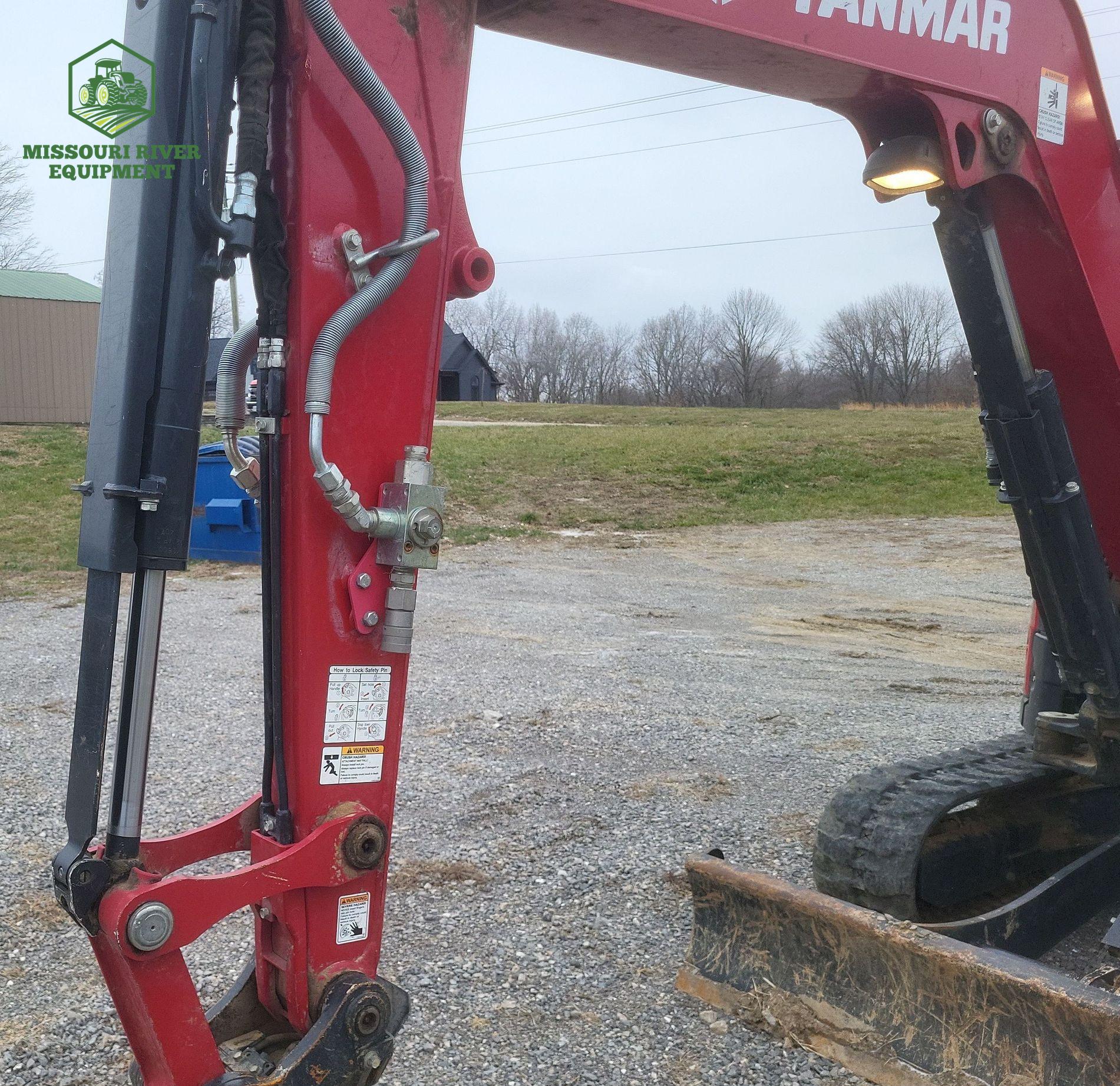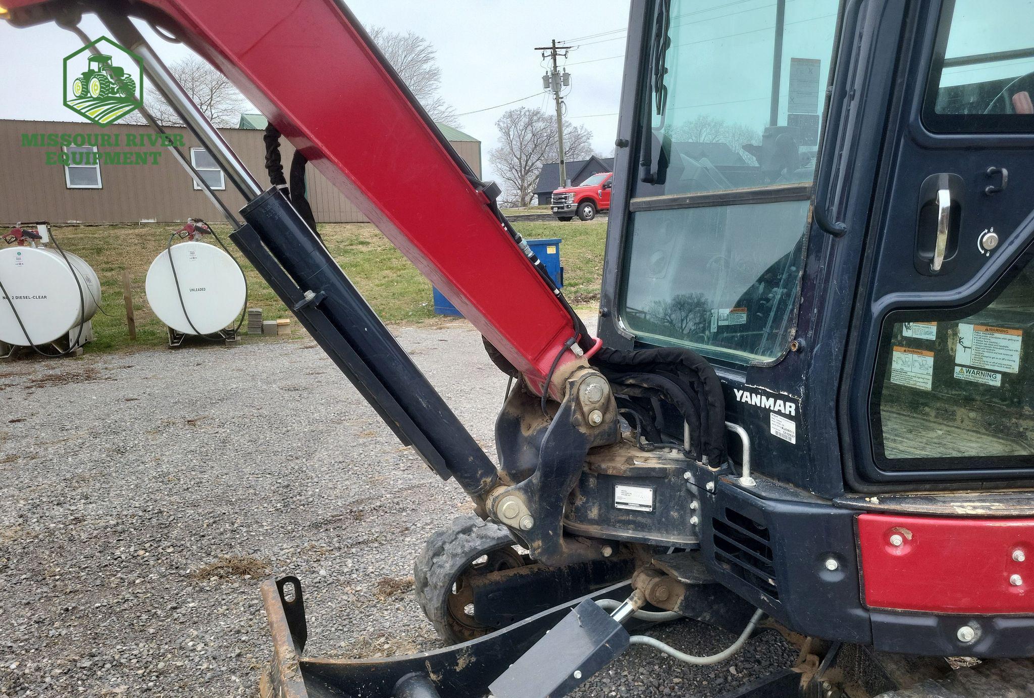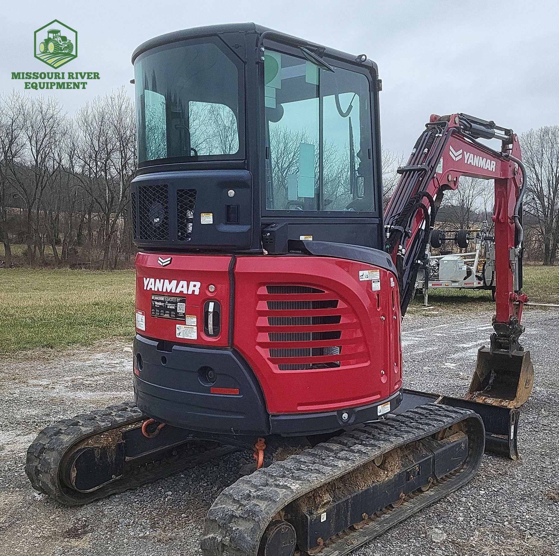 2021 Yanmar ViO35 mini excavator, 939.9 hours on meter. Equipped with a Yanmar 4HNSAE 1.642L Diesel Engine and Hydrostatic Transmission with Two-Speed Travel. Operator station features enclosed cab with AC and heat. Includes auxiliary hydraulics, counterweights, 68" backfill blade, swing boom, 4' 7" stick, and Yanmar hydraulic quick coupler. Comes with 18" TAG bucket with weld-on cutting edge and 4 teeth. Riding on 12" rubber tracks.