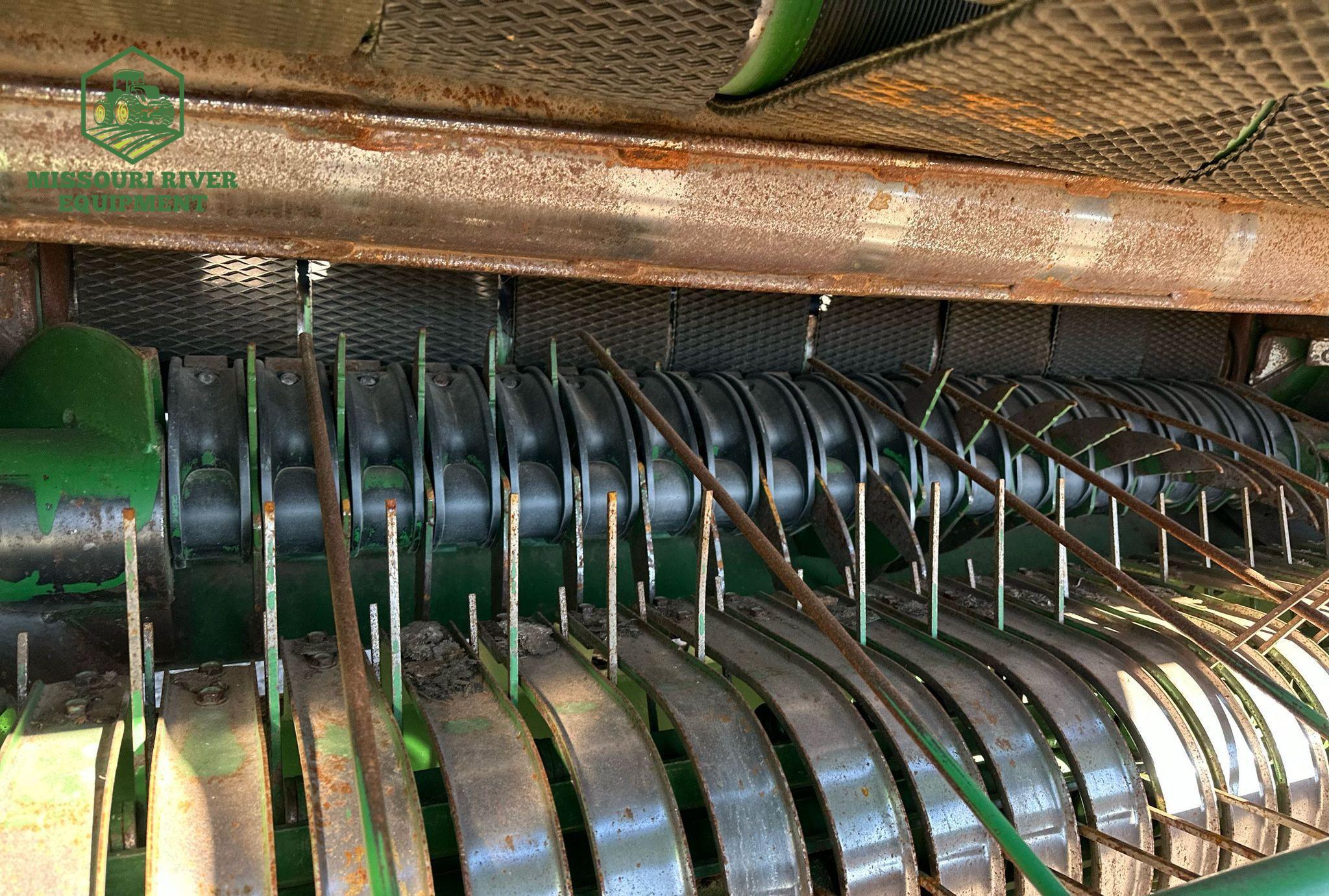 2022 John Deere 560M round baler, 4,765 bale count. Equipped with 1000 PTO, John Deere monitor, and auto lube system. Features transport lights, feed assist roller, gauge wheels (4.80-8/3.75), and 6' 6" pickup width with hydraulic pickup lift. Includes rotor cutter, auto-tie, net-wrap, and bale kicker. Produces 5' x 6' bales. Riding on 21.5L-16 tires. Tractor not included.