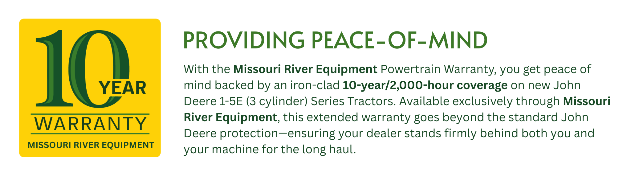 These warranties are available only on new John Deere tractors and exclusively for Missouri River Equipment customers.